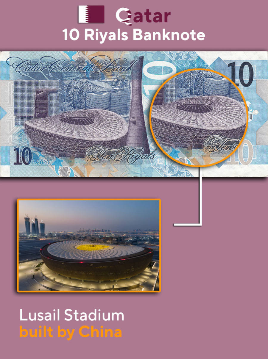 ▲卡塔尔面额10里亚尔纸币——卢赛尔体育场。