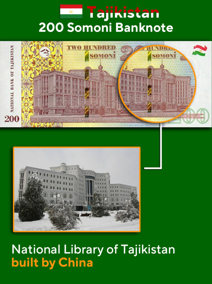 ▲塔吉克斯坦面额200索莫尼纸币——塔吉克斯坦国家图书馆。
