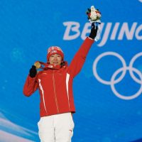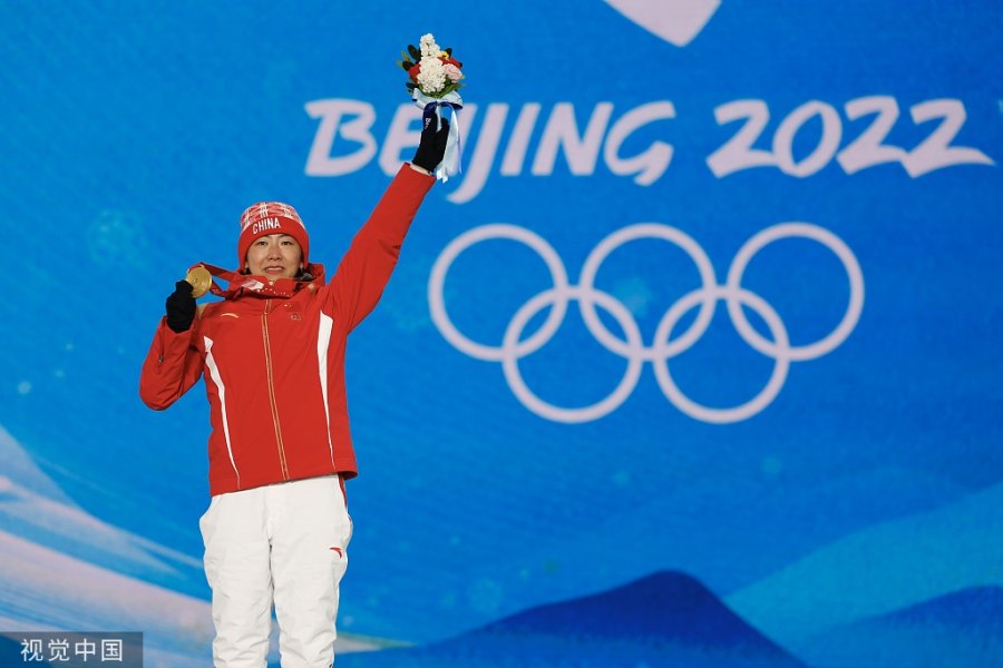 2022年2月15日,张家口,2022北京冬奥会自由式滑雪女子空中技巧颁奖仪式。冠军中国队选手徐梦桃在奖牌颁发仪式上。 中新社记者 富田 资料图