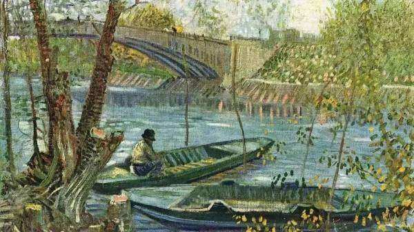 ▲梵高:《克利希桥边的春季垂钓》,1887年,美国芝加哥艺术机构
