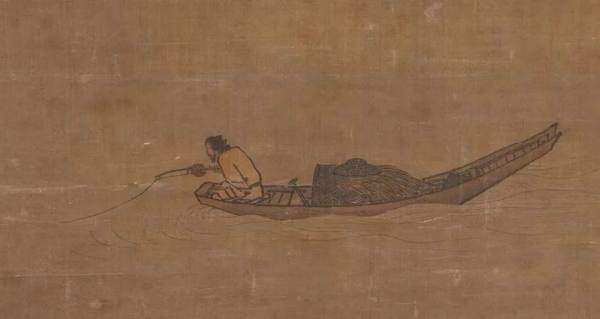 ▲朱邦:《溪谷渔父图》局部,明,大英博物馆