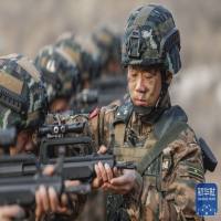 武警河北总队某部大队长李闯组织特战队员进行据枪训练(2021年3月4日摄)。新华社发(张丹 摄)