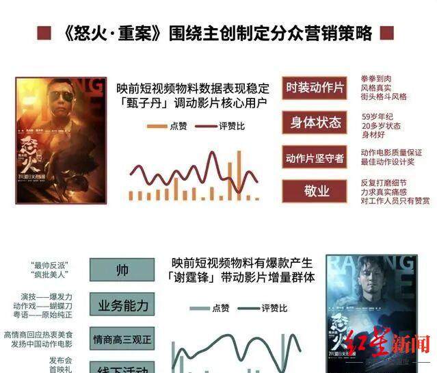 去年暑期档,陈木胜导演的遗作《怒火·重案》票房超过13亿,猫眼研究院发布的《华语动作电影数据洞察》曾提及该片的营销策略,映前阶段的各平台营销数据测试显示,主演甄子丹能够高效影响华语动作电影的既有受众,而另一位主演谢霆锋则更有可能带动影片的增量群体。猫眼娱乐CEO郑志昊曾在公开活动中表示,《怒火·重案》在用户画像中看到大量的女性观众对这部电影非常有好感,她们对演员阵容的好感度非常强烈。因此,就围绕着女性观众和七夕节做了很多活动。结果,《怒火·重案》上映16天的情况下,又在七夕节那天票房破亿了。