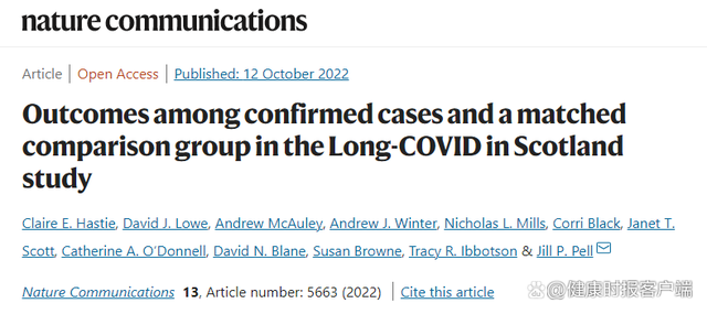 ①Outcomes among confirmed cases and amatched comparison group in the LongCOVID in Scotland study,Nature Communications,2022-10-12,https://doi.org/10.1038/s41467-022-33415-5