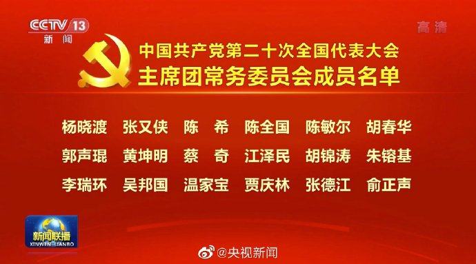 中国共产党第二十次全国代表大会主席团常务委员会成员名单公布,共46人。
