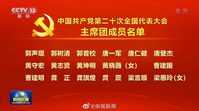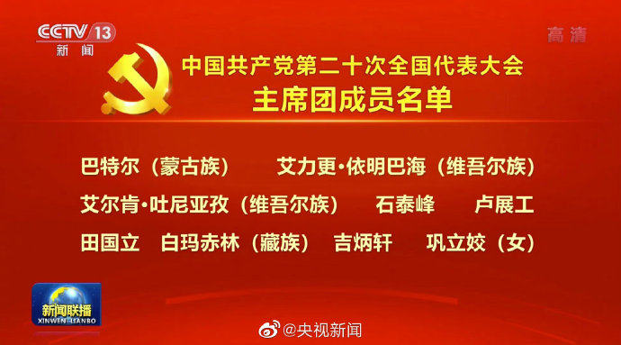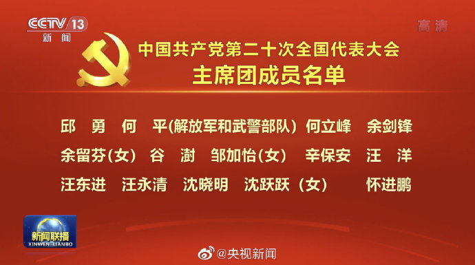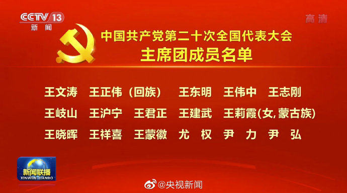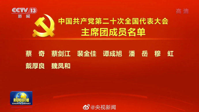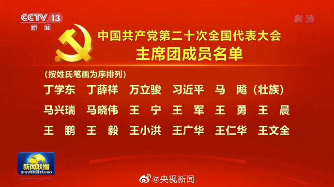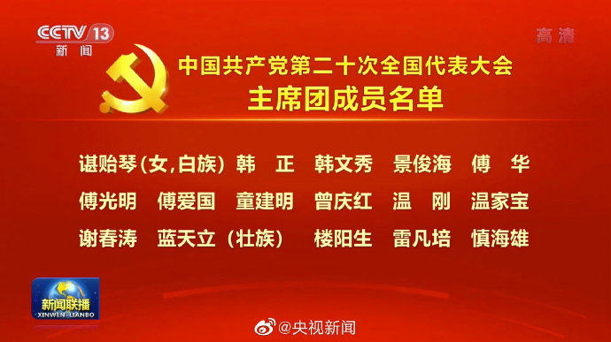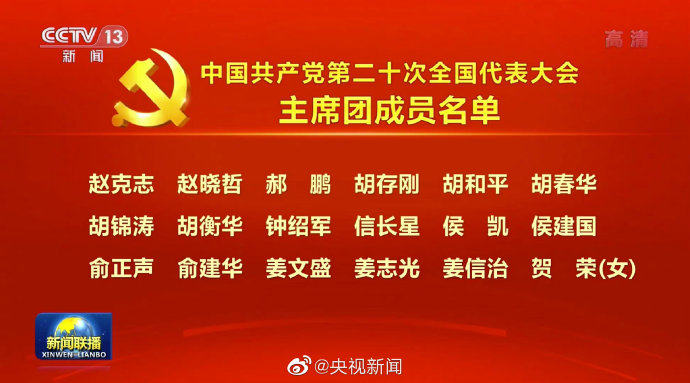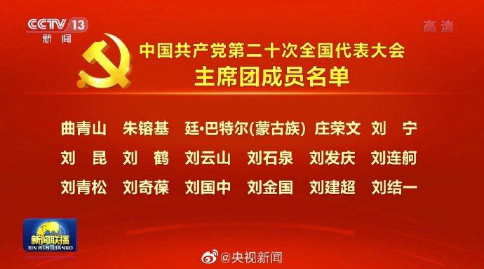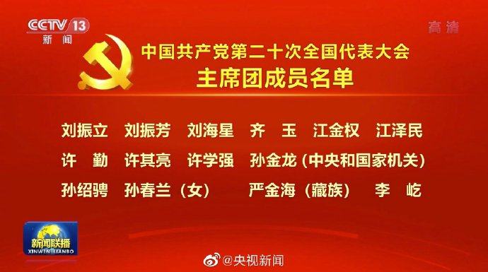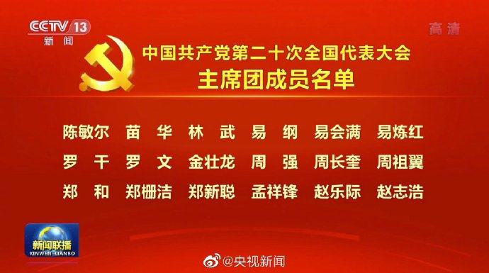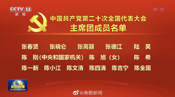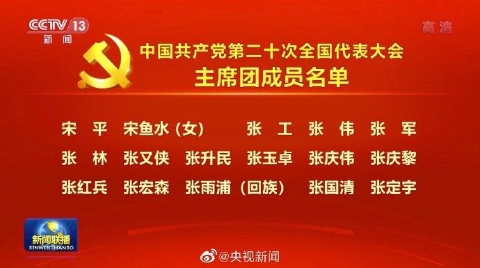 中国共产党第二十次全国代表大会主席团成员名单公布,共243人。