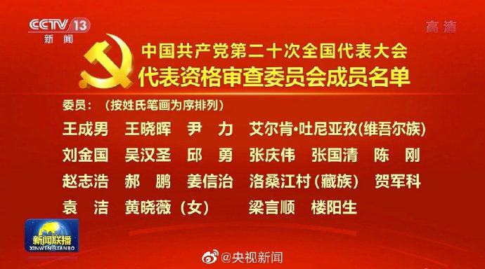 中国共产党第二十次全国代表大会代表资格审查委员会成员名单