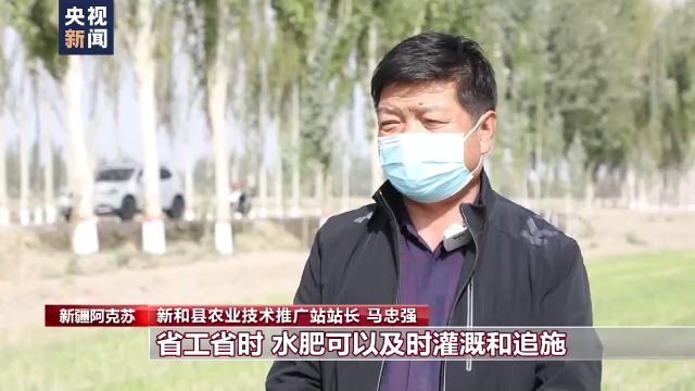 新和县农业技术推广站站长 马忠强:省工、省时,水肥可以及时灌溉和追施,对增加产量有一定促进作用。
