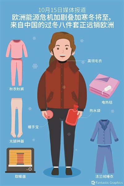 10月以来,某贸易电商平台数据显示,秋衣秋裤和保暖内衣在全欧洲销售额环比上月增长了246%,中国产热水袋销售额环比增长了300%,取暖小家电的销量在欧洲翻了3倍,风能、太阳能、储能电池等能源产品也有一定的增长。这也让国内企业紧锣密鼓地加急准备商品,中国产电热毯、电暖气、羽绒服、电热手套、暖手宝等正通过一些跨境电商平台源源不断销往欧洲。