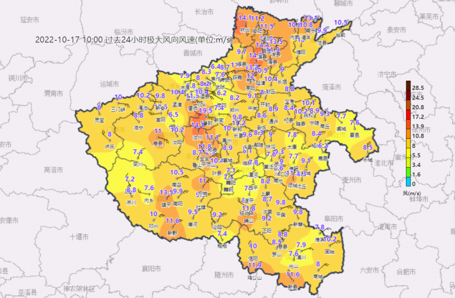 17日下午,全省晴天间多云。东部、南部东北风4级左右,阵风6级左右。