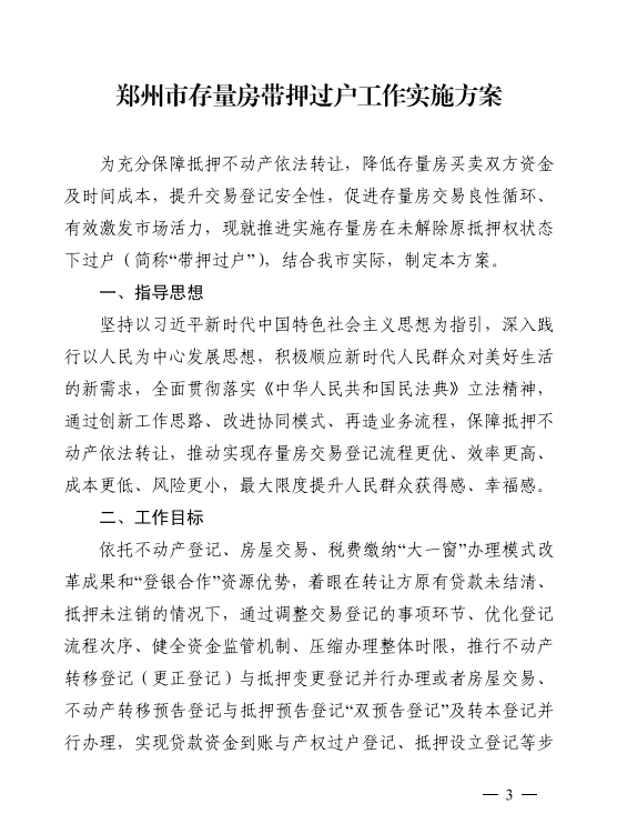 10月13日,郑州市自然资源和规划局、郑州市住房保障和房地产管理局、郑州市金融工作局等7家单位,联合发出《关于印发郑州市存量房带押过户工作实施方案的通知》(以下简称《通知》)。