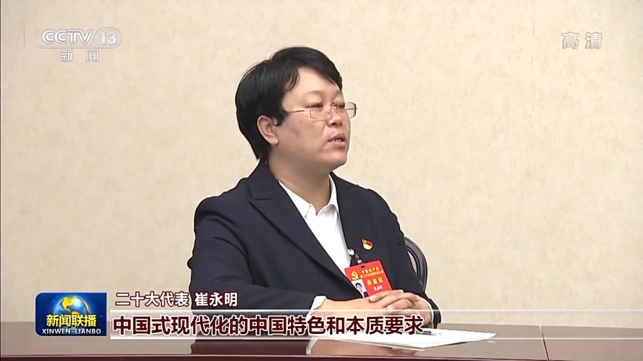 二十大代表 崔永明:习近平总书记给我们指出了中国式现代化的中国特色和本质要求,目标越来越清晰了。大家劲往一块使,心往一块想,社会主义现代化强国是努力奋斗出来的。