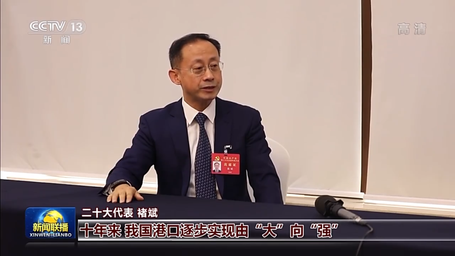 二十大代表 褚斌:十年来,我国港口逐步实现由“大”向“强”,引领全球港口发展。我们将以服务国家重大战略为己任,加快打造世界一流绿色智慧枢纽港口,为更好服务高水平对外开放、畅通国内国际双循环贡献港口力量,在全面建设社会主义现代化国家的新征程上再立新功。