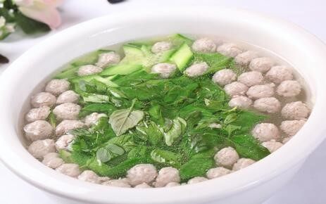 做法:先将猪肉剁成肉泥放入碗中,加水搅匀后再加鸡蛋清、葱花、姜末、精盐、料酒、湿淀粉,用力搅打至肉色发白,粘性增大为止。然后临锅挤成红枣大小的丸子下锅,水沸点水调味便成。这样吃起来丸子软嫩,十分利口。