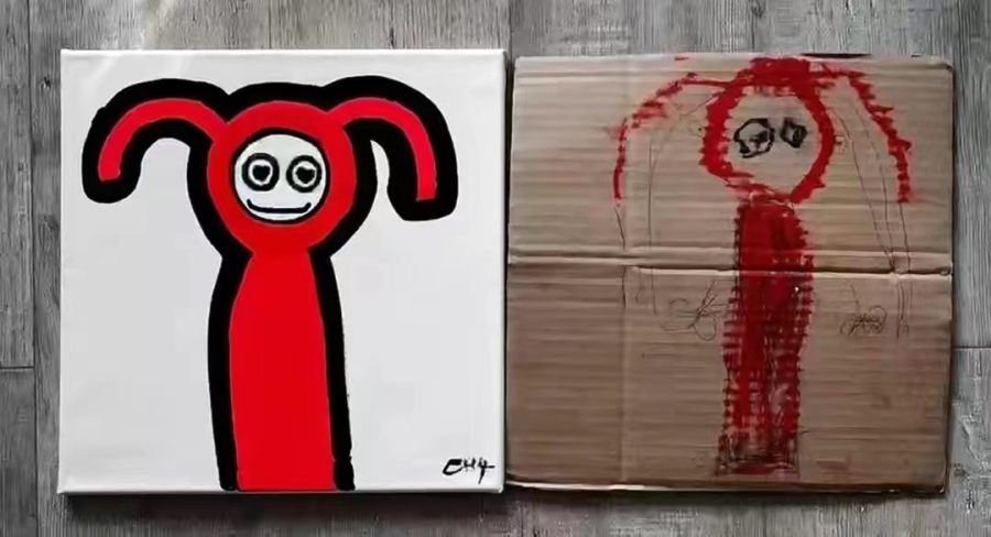 今年35岁的金先生如今正在从事产品设计的相关工作。女儿带着童真的即兴创作,令他产生浓厚兴趣和传作灵感,他选出女儿的几幅作品,将其中的元素提取出来进行再创作。令人意想不到的是,这些画展示在网络上,很多网友十分欣赏,并表达出强烈的购买意向,他把这些画作挂到了闲鱼平台上,原作很快被购买一空,并且出了很多打印画的链接,“我觉得现在的人都很透彻,怎么想的就怎么说,反而会比较让人舒服。”