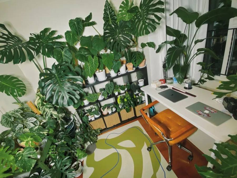 值得关注的是,这些绿植养护成本也相对较高。据洪阳介绍,由于是热带植物,每个品种需要的土壤都不一样,还需要做好通风,否则会烂根。对光线也有要求,不能暴晒和直射,只能在半遮阳的情况下养护。湿度要保持在50%rh-70%rh左右,温度则冬天不能低于15度,夏天不能高于35度,20度-30度之间最适宜,否则会停止生长或者叶子变得很小。杰瑞购买绿植的花费保守估计在9000元左右,但实际上不止于此。除了和绿植相配的花盆、营养土、肥料、防治病虫害的药,杰瑞还买了补光灯、加湿器、电风扇、取暖器。为了抵抗南京的冬天,杰瑞买了小米的智能温控,24小时不间断实时测温,以保证能在绿植需要时开取暖器,空调也常开着,一个冬天过去,电费花了3000多元。除了费钱包,也费精力。杰瑞提到,每天起床会看看病虫害等情况,出现闷根要及时处理。还好现在家里的植物已经适应了环境,可能一周只需要集中性地处理两次,包括浇水、施肥。不过由于养在书房不能直接大面积喷灌,只能一点点浇,浇完水还要把多余的部分倒出来,前后折腾大概要1个小时。