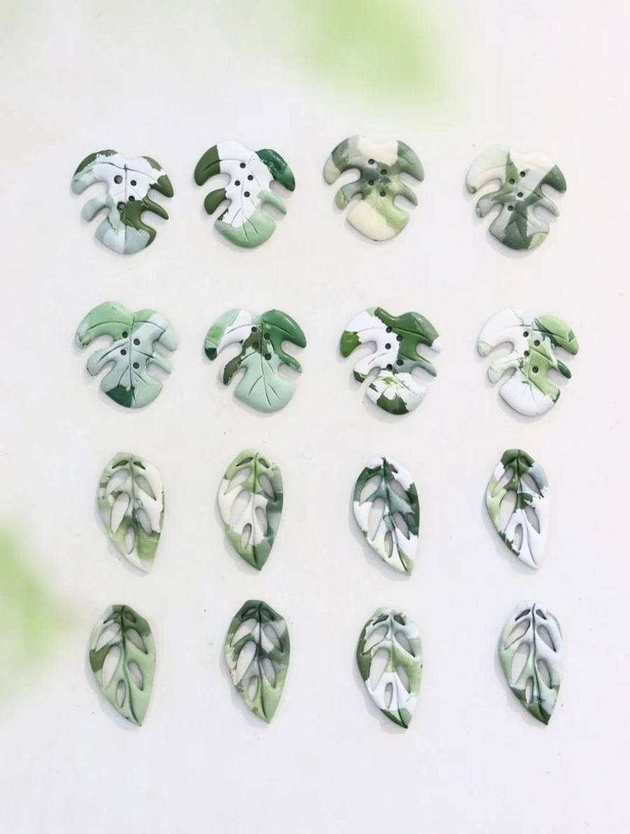 ▲棚棚做的龟背竹耳饰 来源:受访者供图