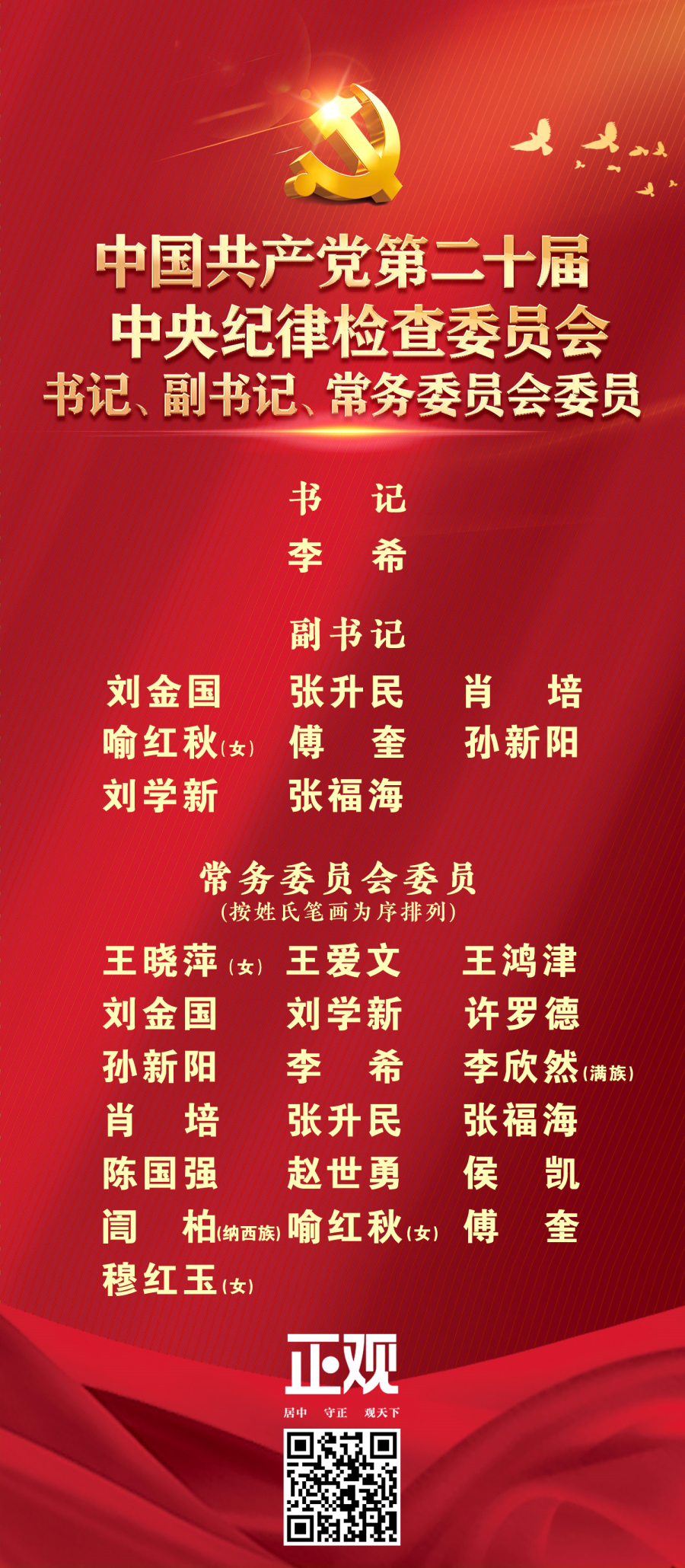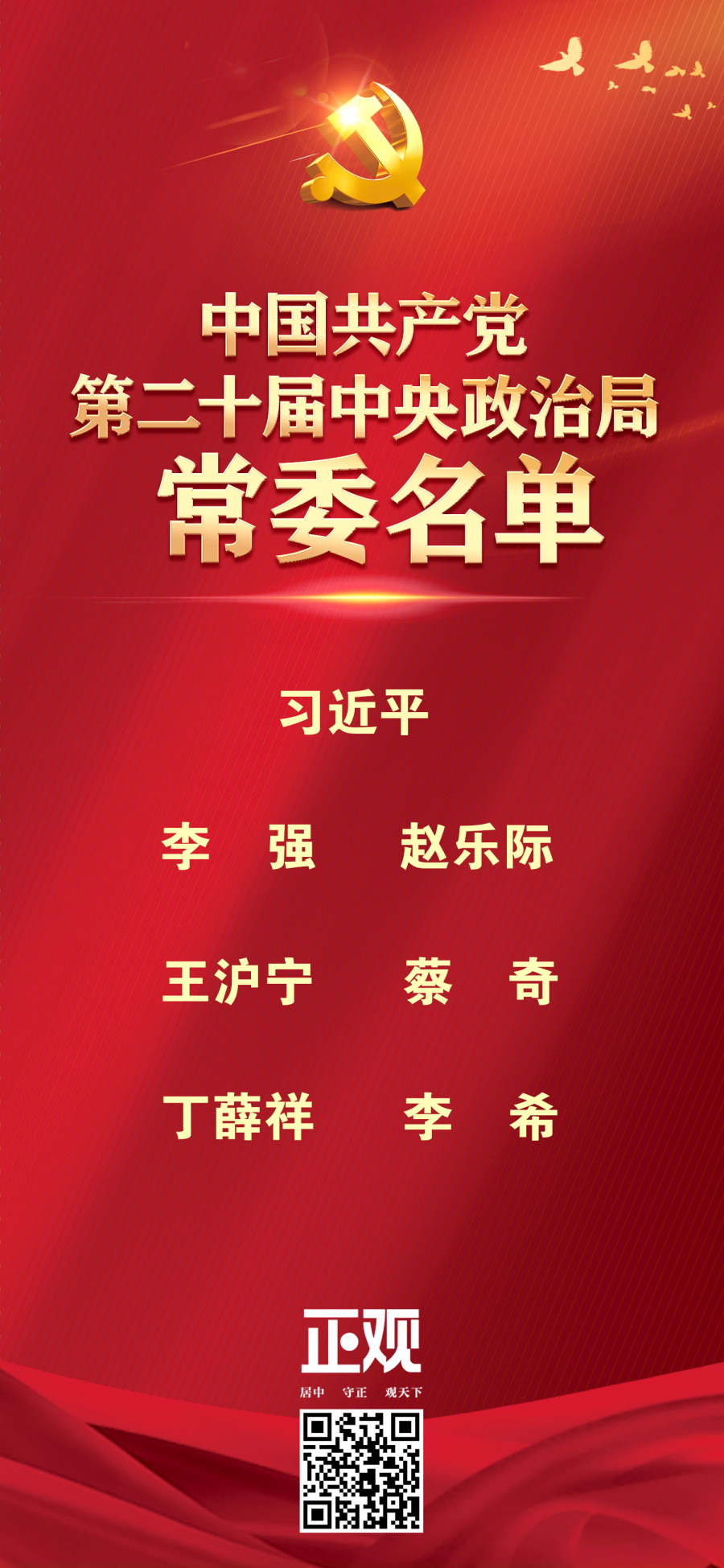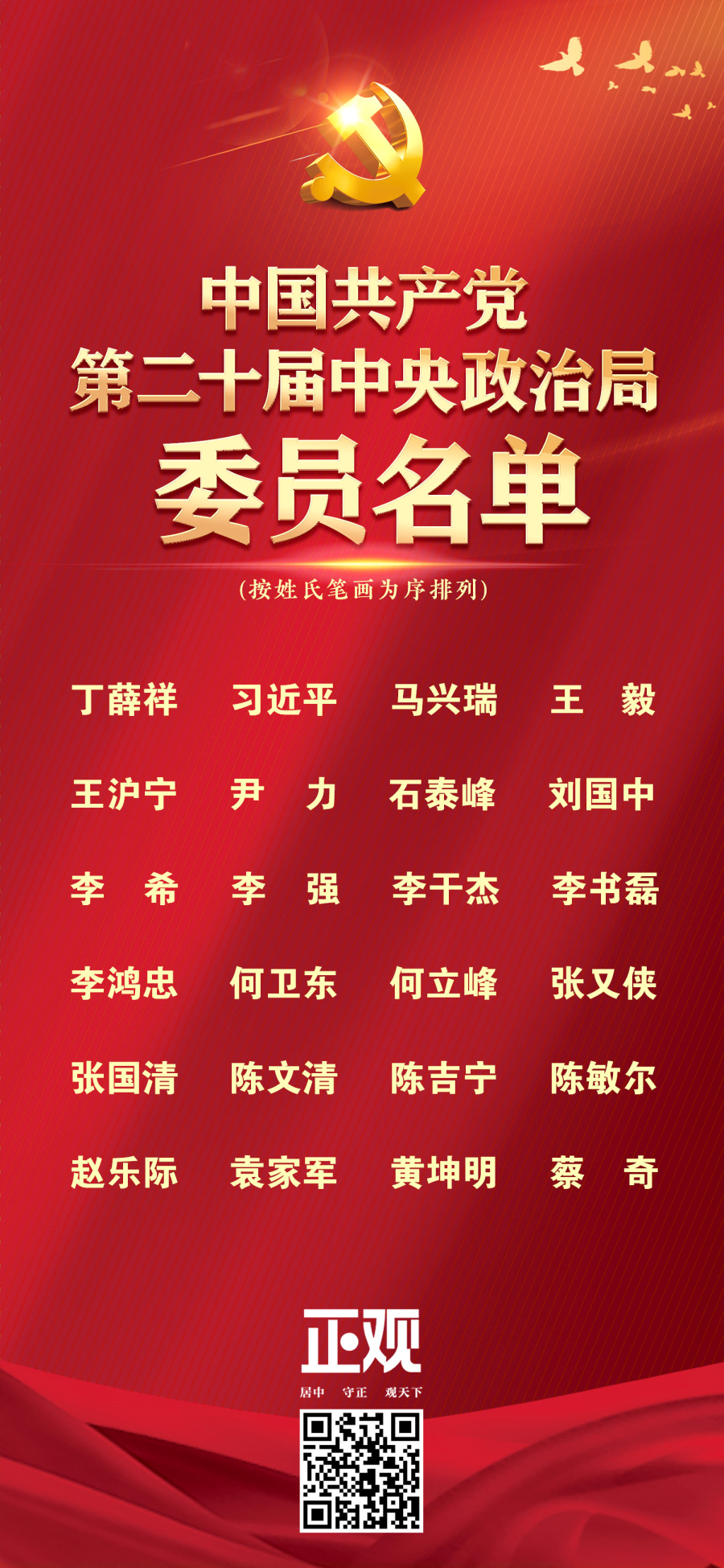 中国共产党二十届一中全会选举产生新一届中央领导机构。全名单如下: