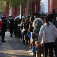 资料图:图为2020年北京一考点考生排队等候入场。 中新社记者 蒋启明 摄