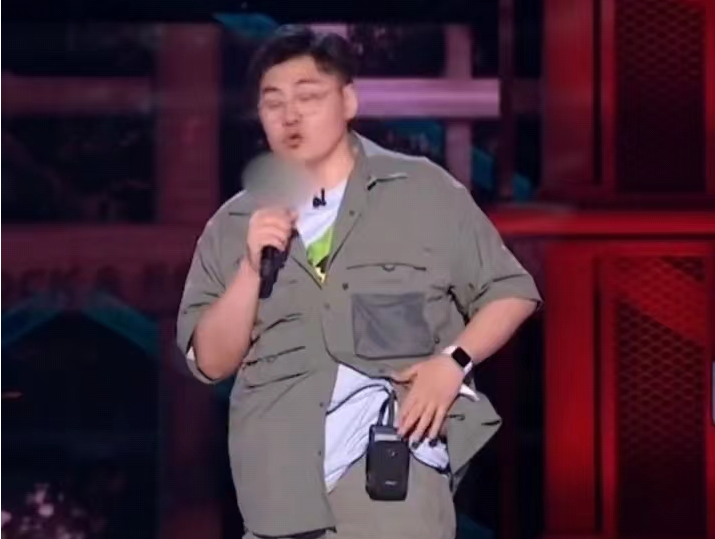 脱口秀舞台上,王十七向观众展示自己的“人工心脏”