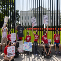 9月19日,美国首都华盛顿,出现“长新冠”后遗症的民众在白宫外抗议拜登宣称“美国疫情结束”的言论。