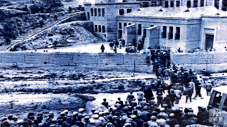 △中共七大代表进入会场的老照片。(总台央视记者卢心雨提供)