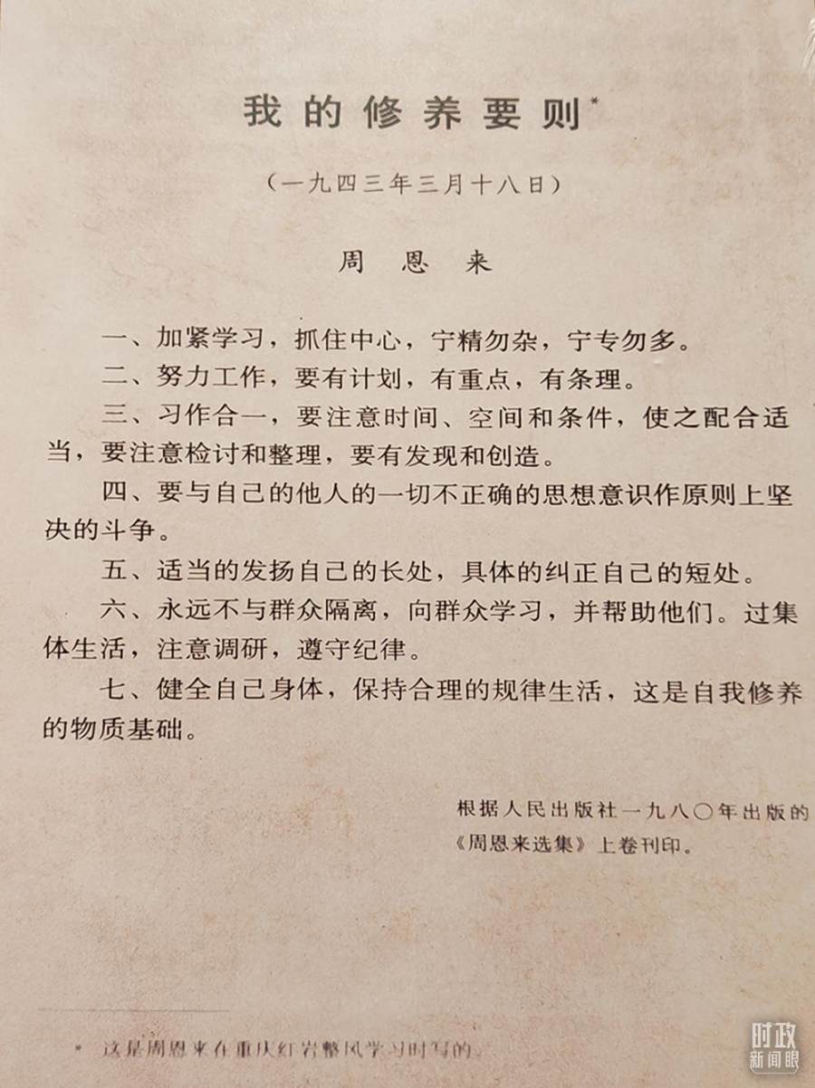 △周恩来所写《我的修养要则》。(总台央视记者彭汉明拍摄)
