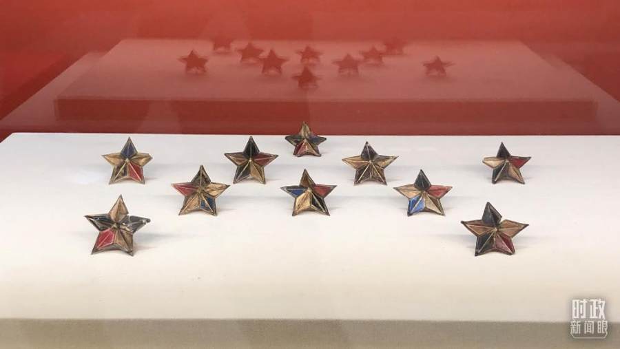 △红四方面军在陕南留下的红军帽徽。(总台央视记者许永松拍摄)