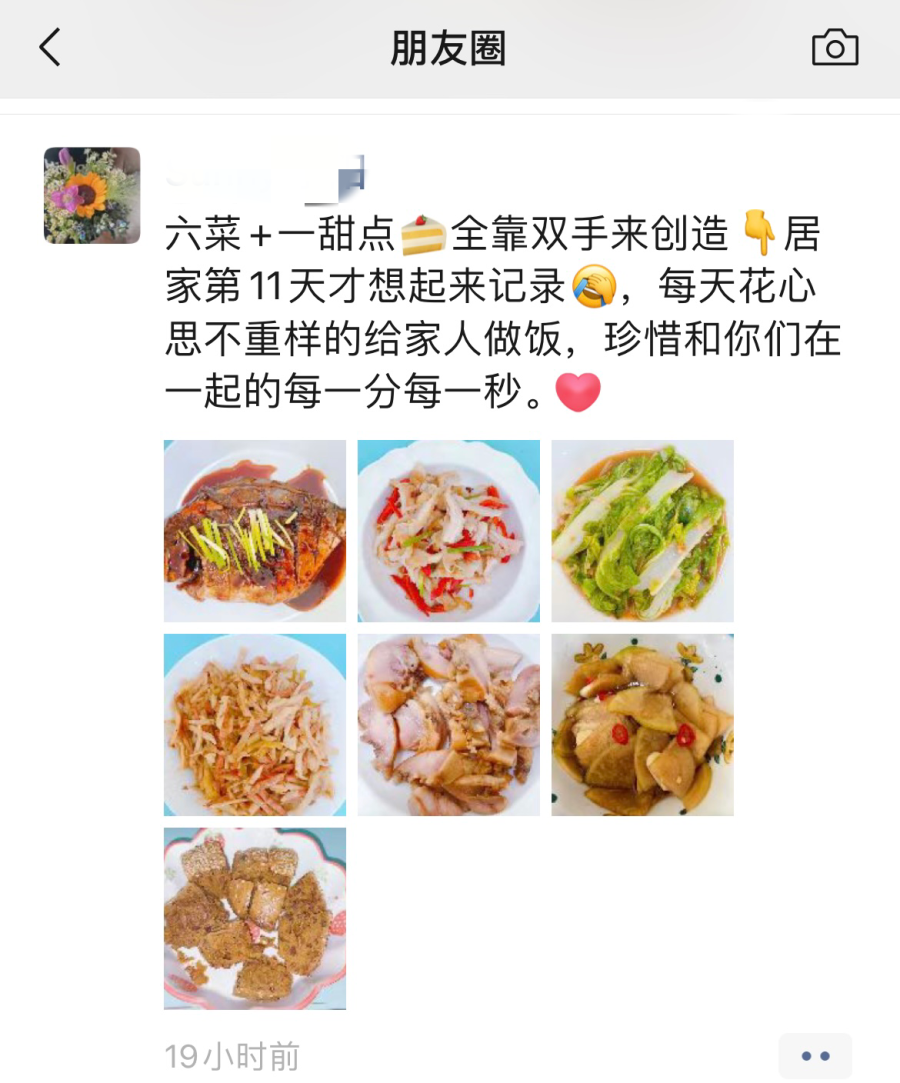 Sunny :每天花心思不重样的给家人做饭,珍惜和你们在一起的每一分每一秒。