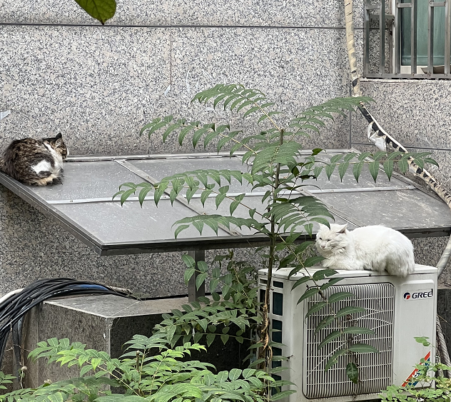 c七柒:当家养的狗狗都穿上了鞋子,格外担心小区的流浪猫大军会没有人喂、没有吃的。有天下楼核酸时看到有只猫耀武扬威地在咬车上的天线,还有的在空调外机上懒洋洋地晒暖,我想这就是大家口中的“猫肥家润”吧。