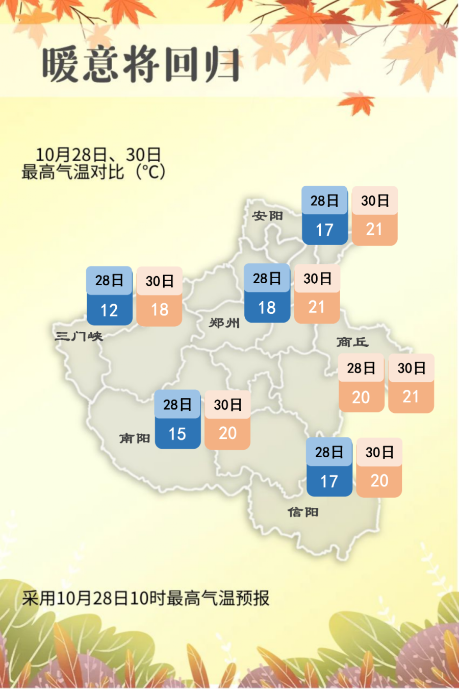 预报来源:河南省气象台2022年10月28日12时预报
