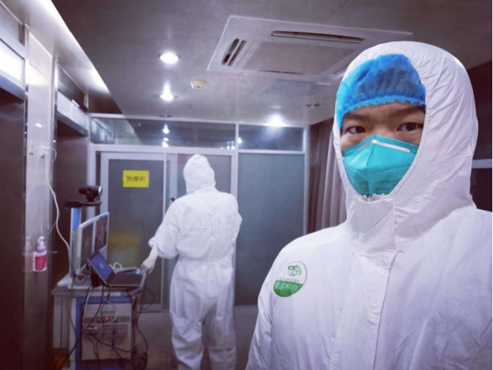 新冠疫情暴发之初,李圆方前往一线隔离病房做保洁工作