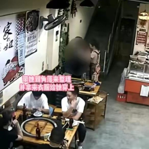 暖心店主帮疑似智力缺陷女孩穿衣