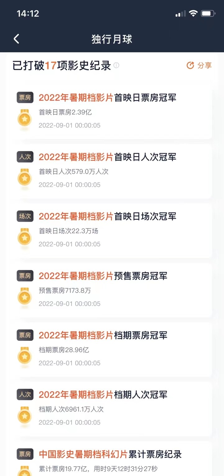 今年的暑期档也依然在流行“密钥延期”,6月24日上映的《人生大事》因为温暖治愈、表现优异,经过两次密钥延期,上映时间延长到了9月26日,最终票房为17.12亿。暑期档的另外一部电影、由沈腾马丽主演的科幻喜剧《独行月球》于7月29日上映,“沈马组合”颇有票房号召力,该片密钥两次延期,直到10月29日,在三个月的时间内,《独行月球》为中秋小长假和国庆黄金档期吸引了不少人气,根据灯塔专业版显示,《独行月球》的最终票房为31.03亿,打破17项影史纪录,目前位列2022年度票房榜第二名,仅次于《长津湖之水门桥》。