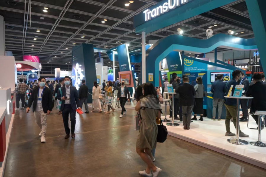 “让我谈谈另一项具确定性的优势:香港是世界领先的金融中心之一,也是中国主要的国际金融中心。”李家超一一列举:二○二○年,香港金融服务业的经济贡献达760亿美元,占本地生产总值百分之二十三点四。在过去13年间,香港七次登上全球首次公开招股(IPO)集资榜首。香港也是全球领先的生物科技集资中心之一。香港交易所去年的市场总成交金额达到破纪录的5.2万亿美元。我们银行体系持有的资产相当于二○二一年本地生产总值的约9.4倍。 去年,香港保险业的管理资产超过4.5万亿美元,位居亚洲第一、世界第二,当中三分之二的资金来自非香港的投资者。香港也是亚洲领先的债券枢纽,连续六年成为全球安排亚洲国际债券发行最具规模的中心。我们是首个亚洲地方政府发行 30 年期和 20 年期,分别以美元和欧元计价的绿色债券。“这些不是单纯的数字,它们展示了香港在金融服务方面的巨大优势。我百分之百肯定,我们过去是、现在是,未来也继续是世界领先的金融中心之一!” 他说:“香港一定会实现新飞跃。” 香港金融管理局(金管局)是这次峰会的主办方,金管局总裁余伟文致辞时说:“峰会在台风下举行,是贵人出门招风雨,感谢海外嘉宾来港,现在香港已经重新开放。”他还预告,这么热闹的峰会,明年还要再办一次。会议上,嘉宾们就全球金融业的不确定因素进行探讨。中国证券监督管理委员会副主席方星海表示,中国证监会将香港视为中国乃至世界非常重要的国际金融中心。国家期望发展高质量经济,这就需要有高质量资本市场,而香港已拥有高质量资本市场。国家的经济发展需要香港,香港将在帮助国家经济增长方面扮演非常重要的角色。因此,中国证监会将全力支持国家相关政策帮助香港成为更强大的金融中心。香港时事评论员朱家建接受中新社记者采访时表示,峰会让全世界投资者和专业人士对香港这个国际金融中心恢复信心,预计股市、保险等领域将会恢复正常运作,而一些支持性的服务(如:仲裁)都会随之被激发。如此一来,投资者才乐于将资金投入香港,专才会被吸引,酒店、旅游业也有望复苏。好事要成双。10月31日,香港金融科技周在湾仔会议展览中心开幕,这是亚洲金融科技行业一大盛事,来自全球各地的数百位行业大咖参加,如若算上线上的参与人数,规模预计超过两万人。10月31日,“香港金融科技周2022”开幕,活动设有论坛和展览两大部分。图为展览会场。中新社记者 陈永诺 摄