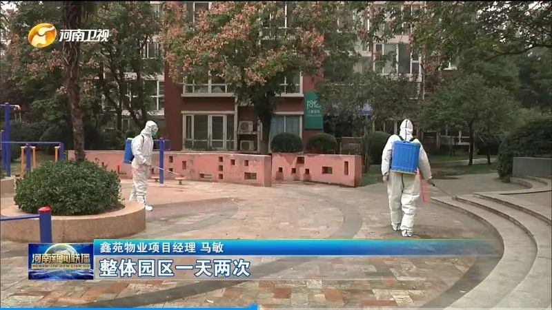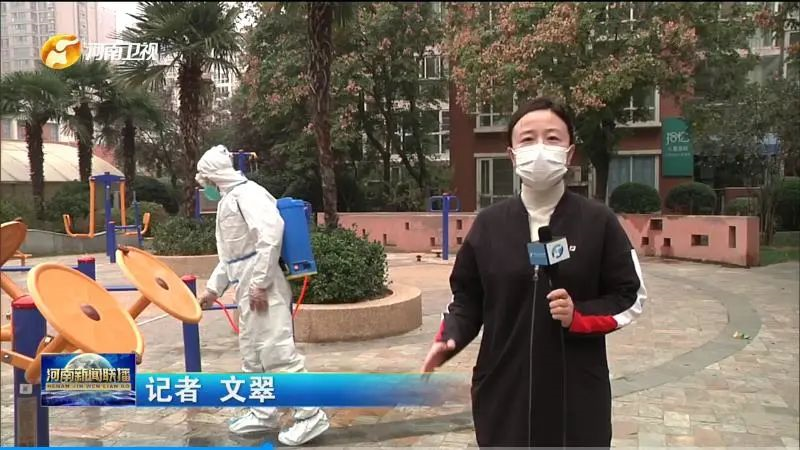 我现在是在位于金水区鑫苑名家小区,物业人员一早就开始今天园区内的第一轮消杀工作。