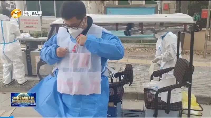 一大早,在郑州市惠济区桂圆社区,志愿者杜悠已经穿好防护服,跟着医务人员到核酸流动采样点开始了一天的工作。