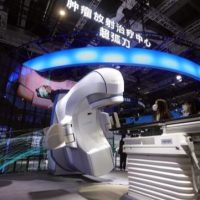 瓦里安在进博会上展出全球首发 “一心多靶”:HyperArc“超弧刀”。 中新社记者 汤彦俊 摄