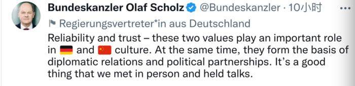 当然,两国交往也会出现摩擦和分歧。朔尔茨对此表示,德方也愿同中方就双方立场不一致的问题交换意见,增进了解和互信,努力稳定、巩固和发展德中关系。