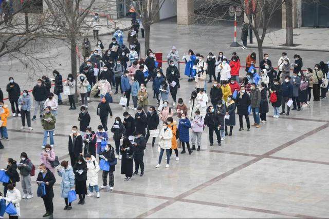 2022年国考,山西省太原市,考生排队等候入场。图/中新图片网