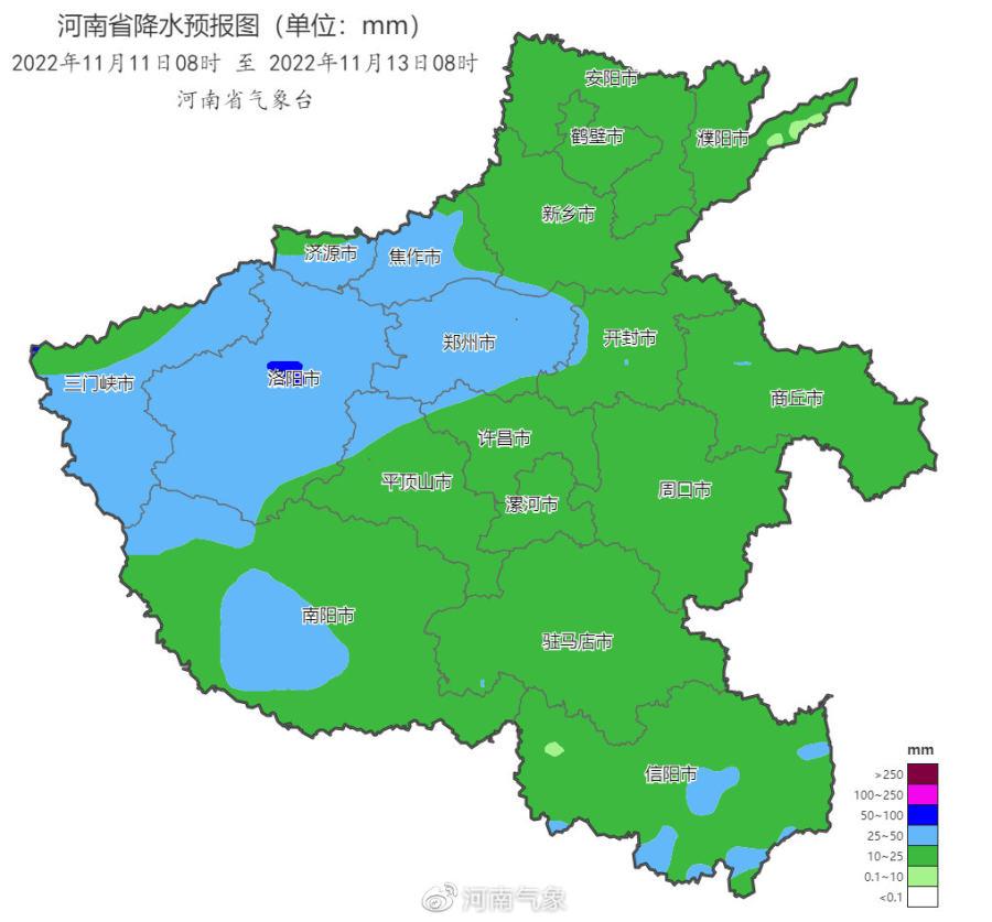 图1 2022年11月11日08时-13日08时河南省降水量预报