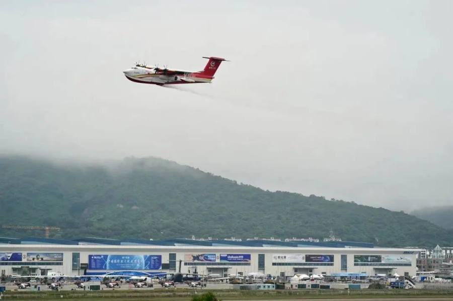 (图为11月6日,AG600M飞机在珠海金湾机场进行适应性飞行。 航空工业供图)