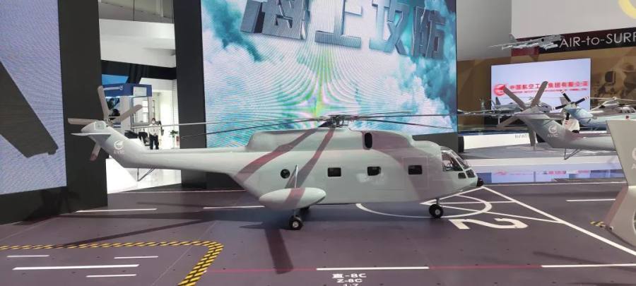 (图为直—8C舰载运输直升机展出模型。 航空工业供图)