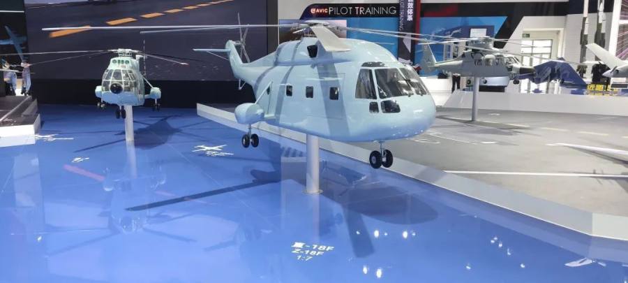 (图为直—18F舰载反潜直升机展出模型。 航空工业供图)
