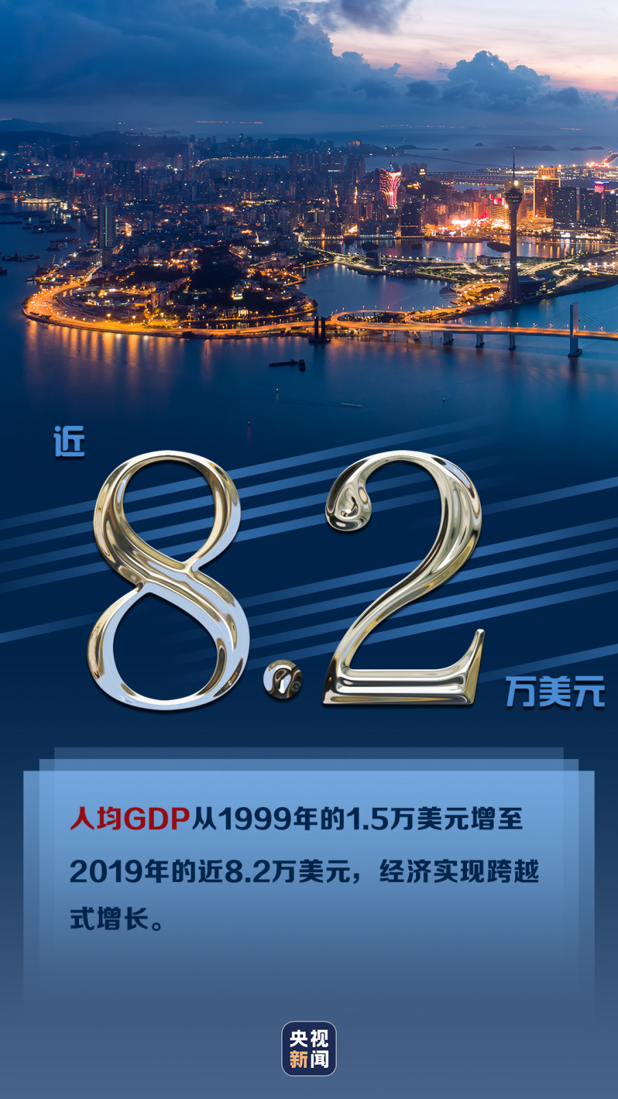 21年前的今天,漂泊多年的澳门回家了!回归以来,“一国两制”成功实践,澳门经历了翻天覆地的变化:社会稳定、经济发展、文化繁荣,澳门老百姓感受到了幸福感。一组数字带你领略澳门的风华正茂↓↓↓