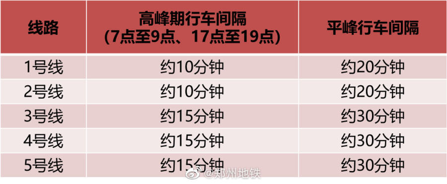 自11月14日起,郑州地铁线网增加17座恢复运营服务车站,届时,5条线路62座车站正常运营。1号线、2号线高峰时段行车间隔缩短至约10分钟,平峰行车间隔缩短至约20分钟;运营区段服务时间为7点至21点。