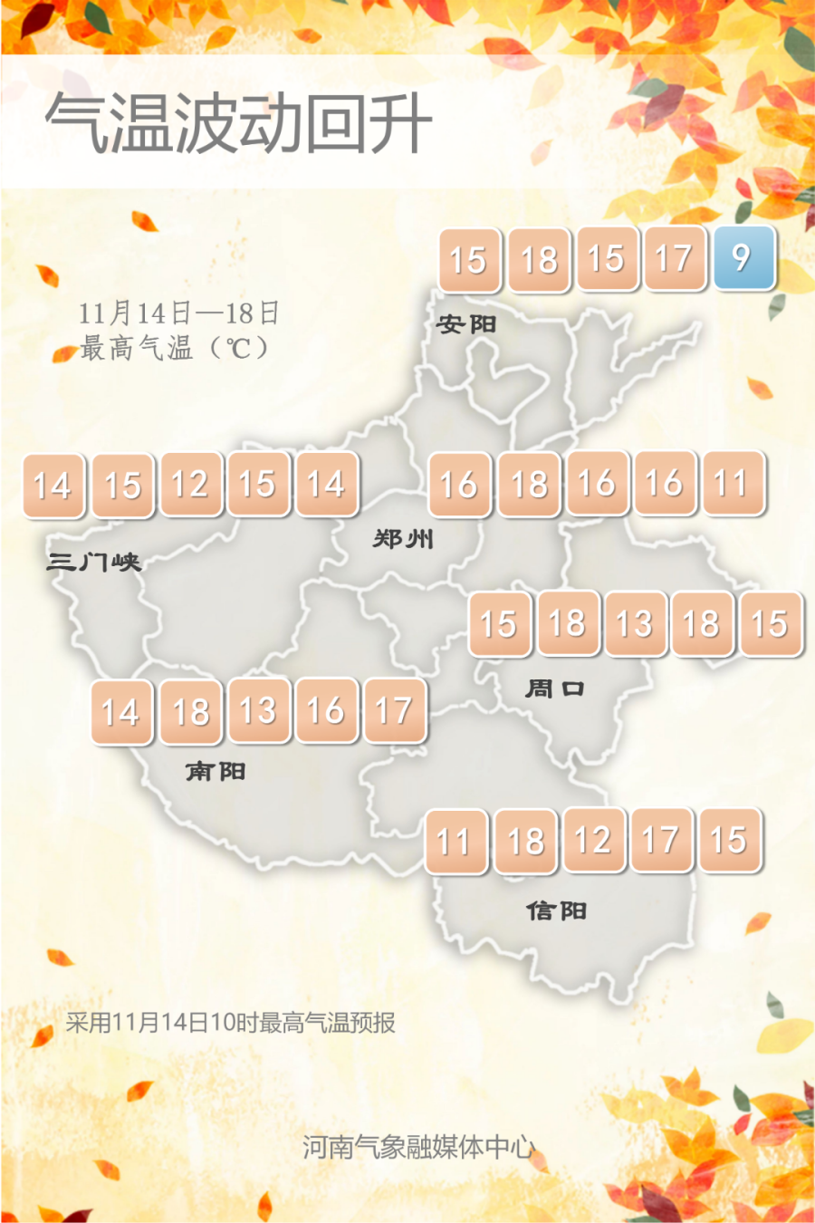 预报来源:河南省气象台2022年11月14日12时预报