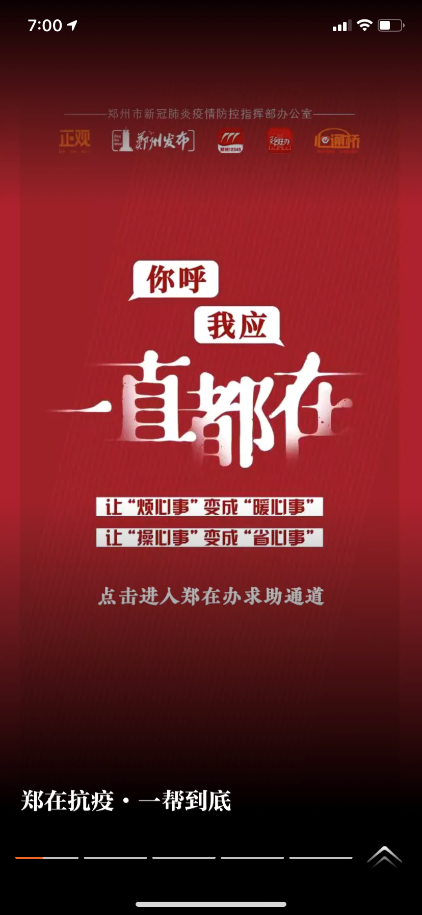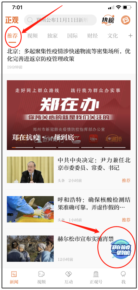 3、点击推荐频道右下角“郑在抗疫”悬浮图标,即可进入求助通道。