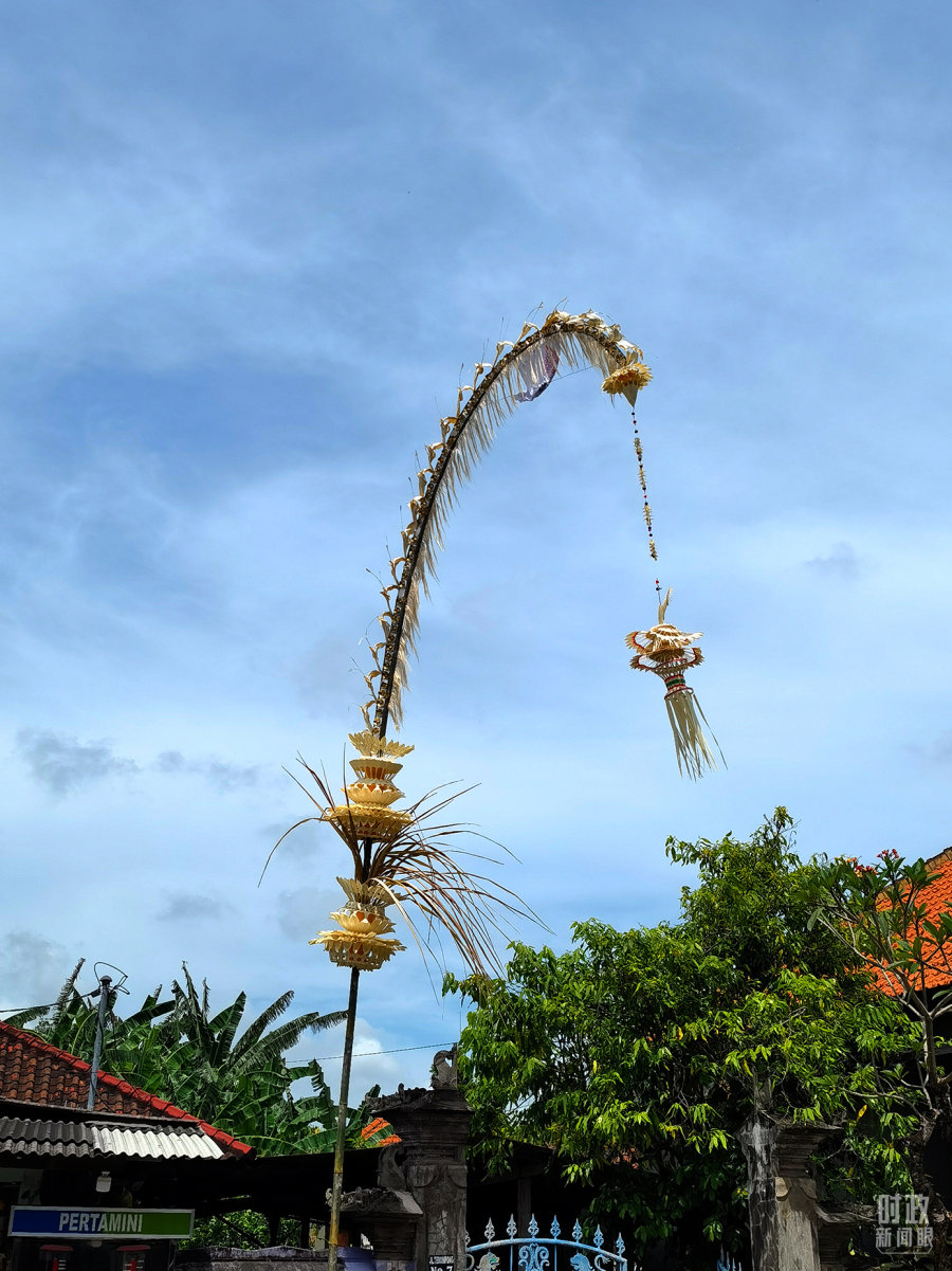 △每逢重大节日,巴厘岛就会装饰起蓬葭。它由椰子叶和鲜花制作而成,表达巴厘岛人对万物之神的祝福和感激。