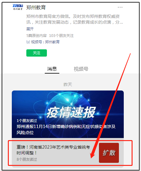 针对此事,11月15日,郑州教育官方微信公众号发布文章《重磅!河南省2023年艺术类专业省统考时间调整!》,内文显示,我省原定于11月26日开始进行的普通高校招生(含对口、专升本)艺术省统考各类考试将调整考试时间,具体安排另行通知。请广大考生关注省教育考试院官网、官微和当地招生考试机构网站,及时了解有关考试安排。